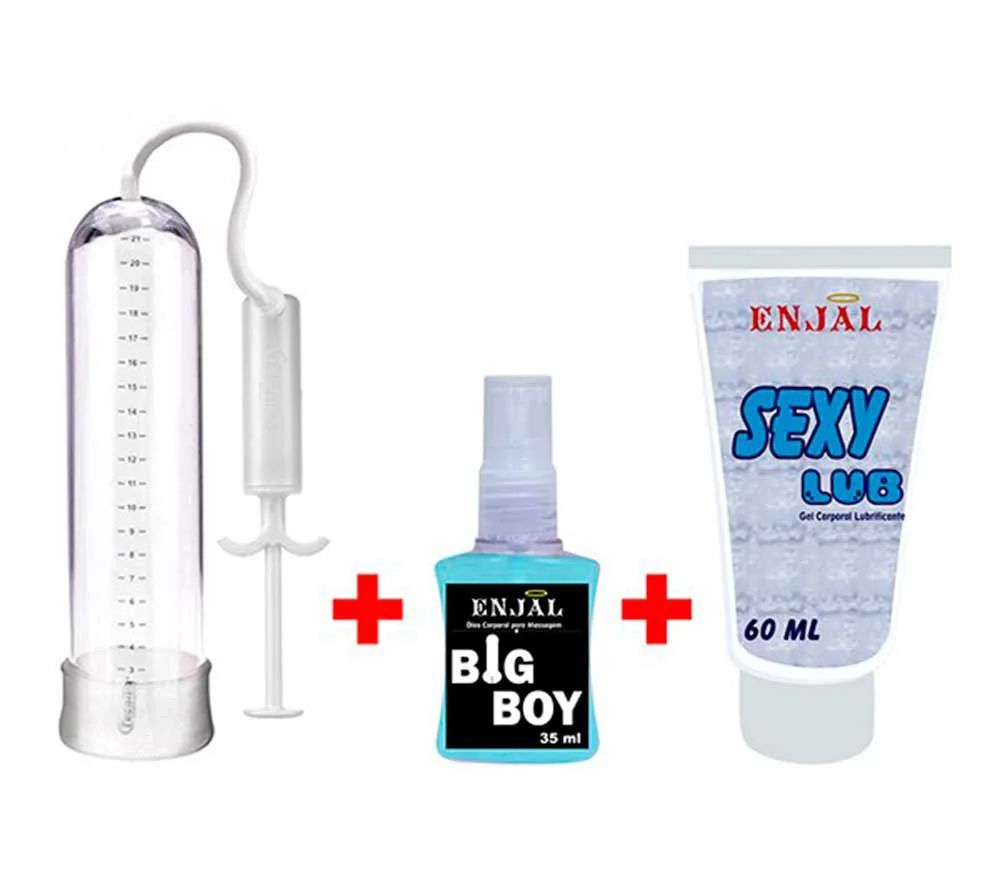 Modo de Usar: Lubrifique o anel de látex no interior do tubo, introduza o pênis no tubo e bombeie pausadamente a seringa para provocar a sucção do ar até criar vácuo no tubo e depois libere a saída do ar. Repita o procedimento por até 10 minutos ininterruptos. O uso regular (10 min. diários) contribui para o aumento do comprimento e espessura. Este aparelho acompanha manual de como ser usado corretamente.